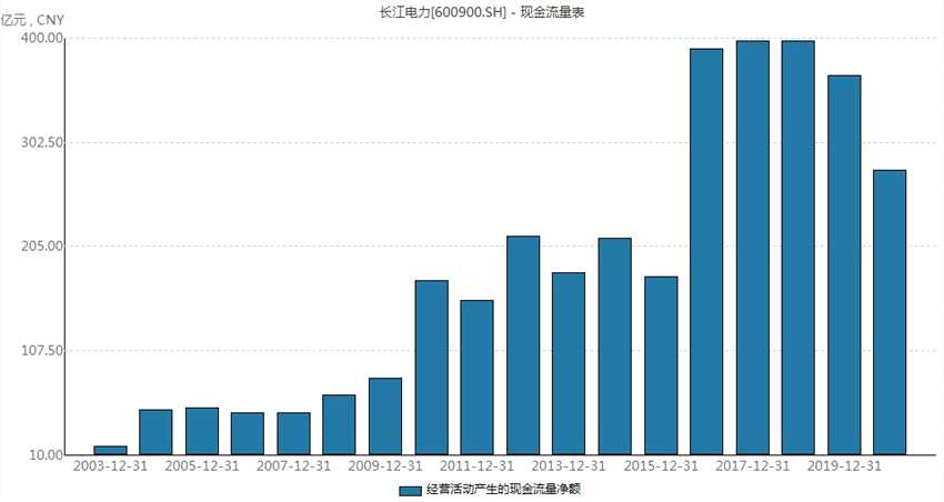 事實(shí)上,不僅去年業(yè)績超過預(yù)期,近年以來,長江電力均保持了“200億以上”的凈利潤增加、“300億以上”的經(jīng)營凈現(xiàn)金流。(見圖4、5)