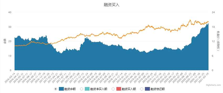 杠桿資金也是長江電力的“忠實(shí)投資者”?!都t周刊》記者統(tǒng)計(jì)發(fā)現(xiàn),自2020年下半年以來,杠桿資金即持續(xù)加倉長江電力,即使春節(jié)以來的市場(chǎng)大幅調(diào)整,杠桿資金仍“逆市”加持。據(jù)數(shù)據(jù)顯示,長江電力融資余額由去年下半年的14億元,增至最新33億元,杠桿資金加倉達(dá)20億元。(見圖3)