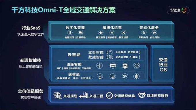 據(jù)介紹,基于此,千方科技提出Omni-T全域交通解決方案,旨在以產(chǎn)業(yè)互聯(lián)網(wǎng)思維與實(shí)踐改造傳統(tǒng)交通行業(yè),助力行業(yè)數(shù)字化轉(zhuǎn)型升級(jí)。
