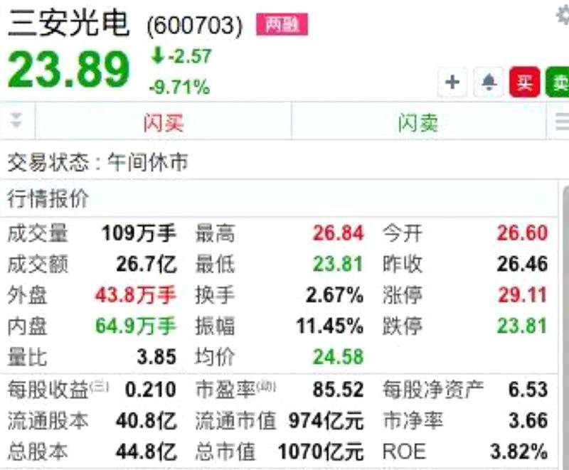 三安光電閃崩逼近跌停