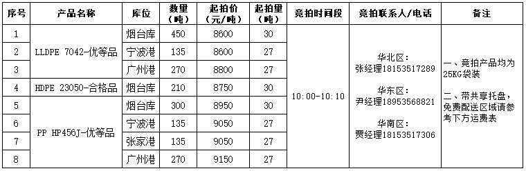 關(guān)于LLDPE 7042、HDPE 23050、PP HP456J競拍公告