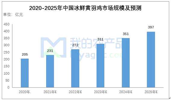 據(jù)統(tǒng)計,2018年中國冰鮮雞市場規(guī)模為62.39億元,2019年增至79.02億元,同比上漲26.65%。預計到2025年,冰鮮黃雞的市場規(guī)模可達到397億元。若我國冰鮮雞產(chǎn)業(yè)能達到歐美國家90%的滲透率,那么在未來幾年,冰鮮雞市場規(guī)模有望達到1123億元。