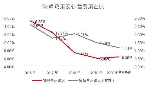 隨著公司生產(chǎn)規(guī)模的擴(kuò)大,藍(lán)思科技的規(guī)模效應(yīng)得到持續(xù)凸顯。據(jù)藍(lán)思科技公告數(shù)據(jù),2016年-2019年,公司銷售費(fèi)用占比和管理費(fèi)用占比整體明顯下降。2016年,公司銷售費(fèi)用和管理費(fèi)用合計(jì)占比為17.80%,而到了2020年前三季度,這一占比已經(jīng)降低到了7.44%,公司盈利能力得到增厚。與此同時(shí),藍(lán)思科技內(nèi)部經(jīng)營效率也得到大幅提升,由于產(chǎn)品獲得客戶高度認(rèn)可,銷售費(fèi)用占比得以降低。藍(lán)思科技2020年業(yè)績(jī)快報(bào)顯示,公司前十大材料的自制比例持續(xù)提高,相比外購成本大幅節(jié)約,公司的成本優(yōu)勢(shì)不斷擴(kuò)大,盈利能力得以提高。