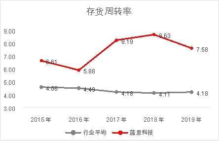 2015-2019年藍(lán)思科技的存貨周轉(zhuǎn)率和應(yīng)收賬款周轉(zhuǎn)率均高于行業(yè)平均水平,這體現(xiàn)出公司的資金利用效率較高。一方面,是由于營業(yè)收入較快增長(zhǎng)帶動(dòng)存貨和應(yīng)收賬款快速周轉(zhuǎn),另一方面也體現(xiàn)了公司存貨和應(yīng)收賬款占比相比同行企業(yè)處于較低水平。