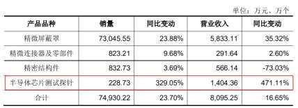 招股書(shū)顯示,公司擁有年產(chǎn)約17億件精微電子零部件以及500萬(wàn)根測(cè)試探針的生產(chǎn)能力,是國(guó)內(nèi)生產(chǎn)規(guī)模較大的精微電子零部件和元器件生產(chǎn)企業(yè)之一。