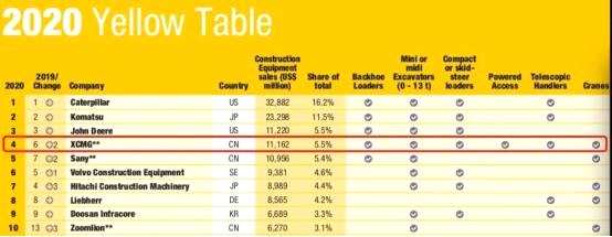 徐工排名同行業(yè)世界第四