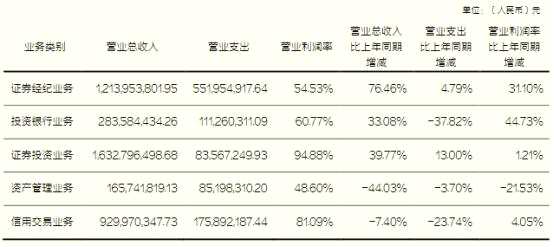 2020年,東北證券證券經(jīng)紀(jì)業(yè)務(wù)實(shí)現(xiàn)營業(yè)收入12.14億元,同比增長76.46%;投資銀行業(yè)務(wù)實(shí)現(xiàn)營業(yè)收入2.84億元,同比增長33.08%;證券投資業(yè)務(wù)實(shí)現(xiàn)營業(yè)收入16.33億元,同比增長39.77%;資產(chǎn)管理業(yè)務(wù)實(shí)現(xiàn)營業(yè)收入1.66億元,同比減少44.03%;信用交易業(yè)務(wù)實(shí)現(xiàn)營業(yè)收入9.30億元,同比減少7.40%。