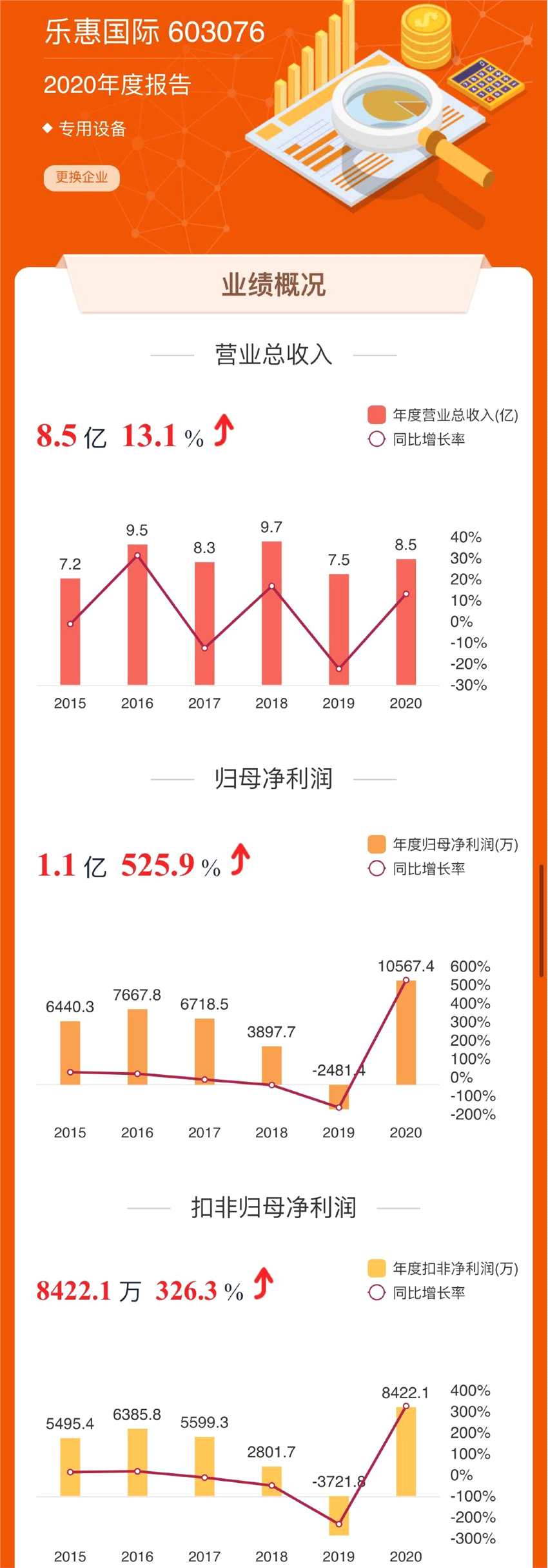 互聯(lián)網(wǎng)訊(記者 鄭明珠)4月15日,寧波【樂惠國際(603076)、股吧】(603076)工程裝備股份有限公司(以下簡稱“樂惠國際”)發(fā)布年度報告稱,2020年歸屬于上市公司股東的凈利潤扭虧為盈,盈利約1.06億元,去年同期凈虧損約2481萬元,主要原因系本期經(jīng)營業(yè)績提升及德國子公司Finnah不再并表所致,營業(yè)收入約為8.52億元,同比增長13.05%。