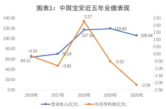 此外,中國(guó)寶安披露的2020年年報(bào)顯示,其營(yíng)業(yè)收入同比減少11.17%,扣非凈利潤(rùn)虧損額較2019年放大了3倍,近五年有四年陷入虧損,多元化投資失敗似乎已成定局。