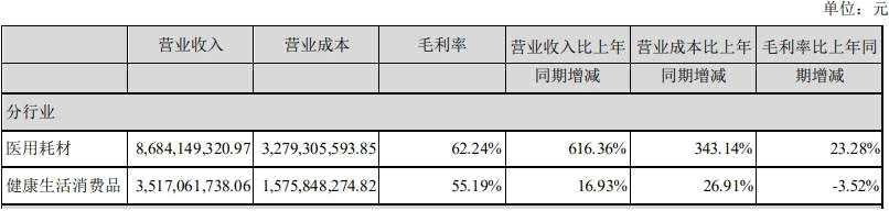 去年,穩(wěn)健醫(yī)療醫(yī)用耗材毛利率為62.24%,同比增長(zhǎng)23.28%;健康生活消費(fèi)品毛利率為55.19%,同比下滑3.52%。