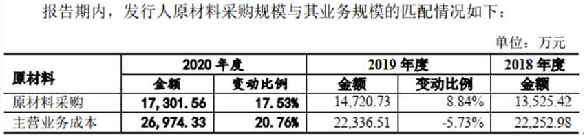 但是,密封科技在分析其原材料采購規(guī)模與其業(yè)務(wù)規(guī)模的匹配情況(如下表所示)時,卻將營業(yè)成本和主營業(yè)務(wù)成本混為一談,更不可思議的是,這種混為一談僅限于2018年和2019年。