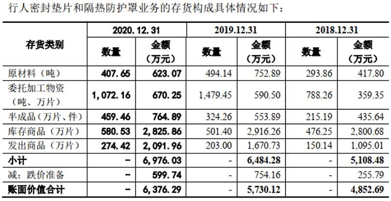 可是,從招股說明書披露的信息來看,密封墊片、隔熱防護(hù)罩及密封纖維板的產(chǎn)銷存勾稽關(guān)系卻是失效的。