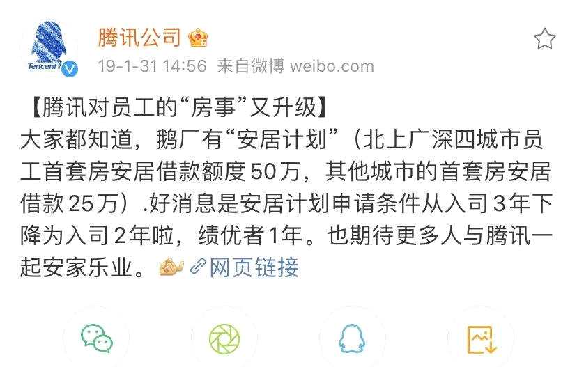 騰訊相關(guān)負(fù)責(zé)人稱:“員工是騰訊最寶貴的財(cái)富,員工只有安居才能樂業(yè)。管理層在充分調(diào)研和考慮后,決定推出‘安居計(jì)劃Plus方案’,用最實(shí)在的方式幫助員工創(chuàng)造更好的生活條件,實(shí)現(xiàn)員工和公司的共同成長?!?/p>