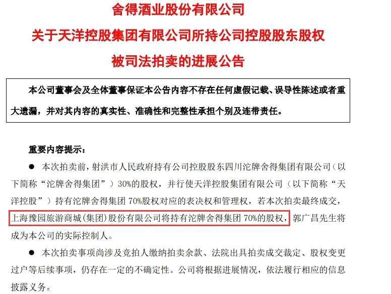2020年12月31日,復(fù)星旗下上市公司豫園股份(600655)以45.3億元的價(jià)格成功競(jìng)得舍得集團(tuán)70%股權(quán),郭廣昌成為【舍得酒業(yè)(600702)、股吧】的實(shí)際控制人。