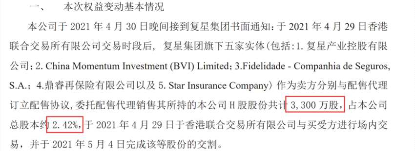 對(duì)于減持的理由,復(fù)星國(guó)際和郭廣昌并沒(méi)有明確公開(kāi)表態(tài)。僅在一份權(quán)益變動(dòng)報(bào)告書(shū)中,公司寫(xiě)到過(guò)減持的目的,“信息披露義務(wù)人本次系因正常投退安排而減持?!?/p>