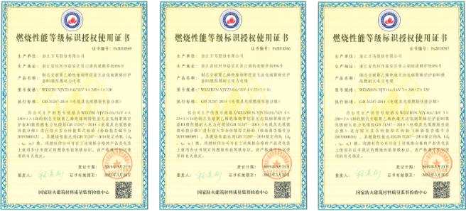 目前,萬(wàn)馬股份多品類(lèi)多款產(chǎn)品的阻燃B1級(jí)性能已通過(guò)第三方權(quán)威機(jī)構(gòu)檢測(cè),獲國(guó)家防火建筑材料質(zhì)量監(jiān)督檢驗(yàn)中心出具的型式試驗(yàn)報(bào)告和燃燒性能等級(jí)標(biāo)識(shí)授權(quán)使用證書(shū)!
