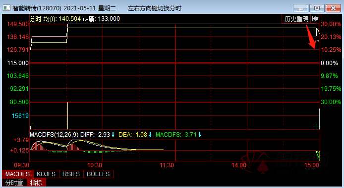 臨停結(jié)束后,多數(shù)可轉(zhuǎn)債發(fā)生跳水,智能轉(zhuǎn)債尾盤恢復(fù)交易后,價(jià)格迅速從149.5元跌至133元,飛鹿轉(zhuǎn)債、正元轉(zhuǎn)債等也均發(fā)生大幅跳水,追高投資者損失慘重。