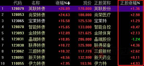 于此同時(shí),上述轉(zhuǎn)債的正股卻并沒有太大動靜,例如,英聯(lián)轉(zhuǎn)債大漲26%,而其正股英聯(lián)股份(002846)漲幅僅1.3%,晶瑞轉(zhuǎn)債甚至在正股下跌的情況下大漲了10%。