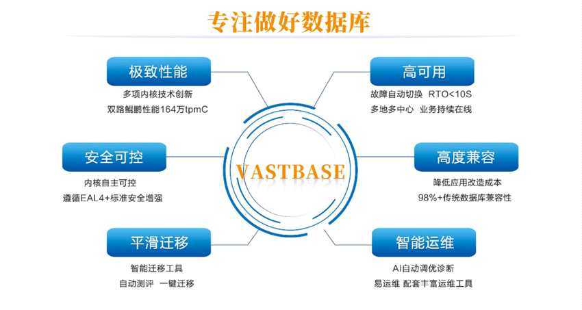 Vastbaes還擁有多項(xiàng)內(nèi)核技術(shù)創(chuàng)新,在保證極致性能的同時(shí),突顯了并發(fā)量更大、業(yè)務(wù)運(yùn)行更平穩(wěn)的優(yōu)勢(shì);實(shí)現(xiàn)了進(jìn)程改線程,并加強(qiáng)了鎖細(xì)化技術(shù);基于華為的雙路鯤鵬服務(wù)器,TPMC值可達(dá)164萬(wàn)。對(duì)傳統(tǒng)商業(yè)數(shù)據(jù)庫(kù)的兼容性可達(dá)98%以上,可降低應(yīng)用改造成本。再搭配遷移工具exBase,可實(shí)現(xiàn)傳統(tǒng)商業(yè)數(shù)據(jù)庫(kù)快速一鍵遷移,為客戶節(jié)省成本、降低風(fēng)險(xiǎn)。在高可用方面,可實(shí)現(xiàn)故障自動(dòng)切換,RTO