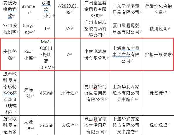 經(jīng)檢驗,本次抽查發(fā)現(xiàn)不合格產(chǎn)品458批次,其中小熊電器生產(chǎn)的安撫奶嘴赫然在列,不合格項目為“擋板一般要求”。