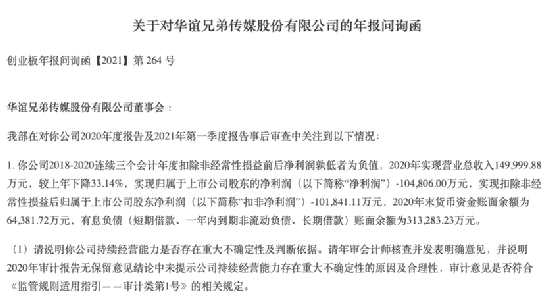 另外,深交所要求華誼兄弟說明,實際控制人被列為被執(zhí)行人,執(zhí)行標(biāo)的3億元,是否存在平倉風(fēng)險。此外,深交所還就華誼兄弟持續(xù)經(jīng)營能力是否存在重大不確定性、公司實際控制人的股票質(zhì)押是否已構(gòu)成違約等方面進(jìn)行問詢。