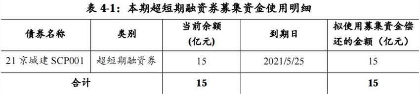 本期超短期融資券發(fā)行擬募集資金15億元,用于償還發(fā)行人即將到期債務(wù)融資工具。
