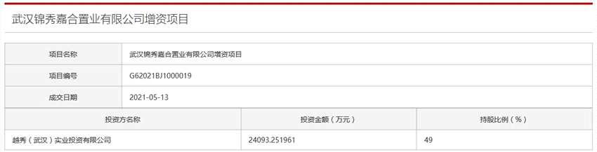資料顯示,越秀(武漢)實業(yè)投資有限公司(實際控股人為越秀)將投資2.409億元,對應(yīng)持股比例為49%。