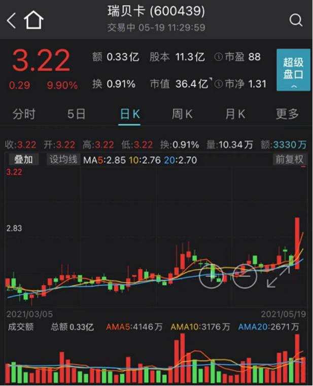醫(yī)美領(lǐng)域不僅頻現(xiàn)跨界布局,在二級(jí)市場(chǎng)上,醫(yī)美概念的炒作范圍不斷擴(kuò)大,近期已經(jīng)蔓延至“脫發(fā)”方向,其中主營(yíng)假發(fā)業(yè)務(wù)的瑞貝卡(600439)今日再度漲停,報(bào)3.22元,迎來(lái)兩連板。