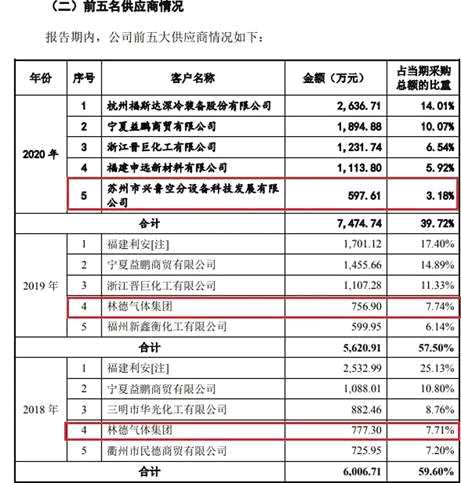 同一份招股書中,關(guān)于林德氣體、空氣化工集團(tuán)等銷售或采購金額多處數(shù)據(jù)披露出現(xiàn)前后不一致的情況,原因是什么?究竟哪一個(gè)數(shù)據(jù)才是真實(shí)、準(zhǔn)確的?另外,招股書曾披露2020年向林德氣體的采購金額為649.40萬元,該金額遠(yuǎn)高于公司披露的向2020年第五大供應(yīng)商蘇州市興魯空分設(shè)備科技發(fā)展有限公司的597.61萬元的采購金額,林德氣體在2020年卻未躋身公司前五大供應(yīng)商名單,原因又是什么?
