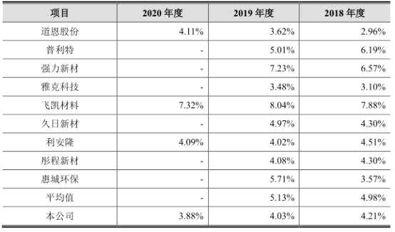 高透明合成水滑石生產(chǎn)技術(shù)對應(yīng)的產(chǎn)品,其收入2018-2020年分別為871.21萬元、963.35萬元和1306.47萬元,占比也分別只有2.87%、2.47%和2.85%。