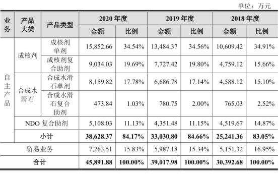 數(shù)據(jù)顯示,公司核心技術(shù)β晶型增韌成核劑生產(chǎn)技術(shù),和高透明合成水滑石生產(chǎn)技術(shù)的產(chǎn)品,歷經(jīng)數(shù)年仍處于應(yīng)用推廣階段,收入貢獻(xiàn)遲遲難以提升。其中β晶型增韌成核劑生產(chǎn)技術(shù)對應(yīng)的產(chǎn)品,2018-2020年收入分別為183.46萬元、97.79萬元和667.29萬元,營收占比僅為0.60%、0.25%和1.45%。
