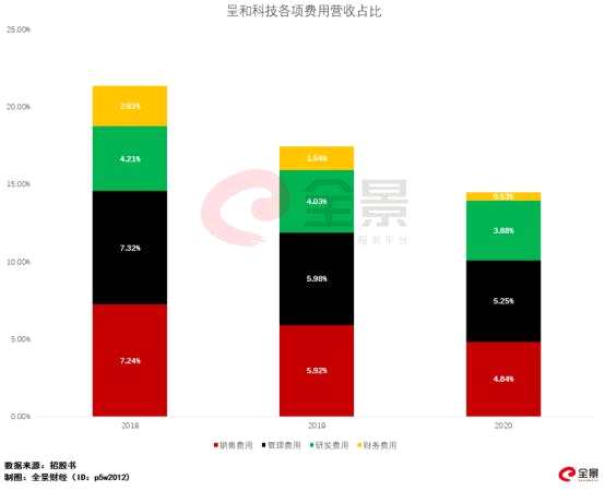 研發(fā)費用率方面,呈和科技2018-2020年分別為4.21%、4.03%、3.88%,不僅相比于行業(yè)均值2018、2019的4.98%、5.13%明顯落后,并且跟行業(yè)呈現(xiàn)研發(fā)費用率增長趨勢相反,公司2018年后的研發(fā)費用率還在持續(xù)下滑。