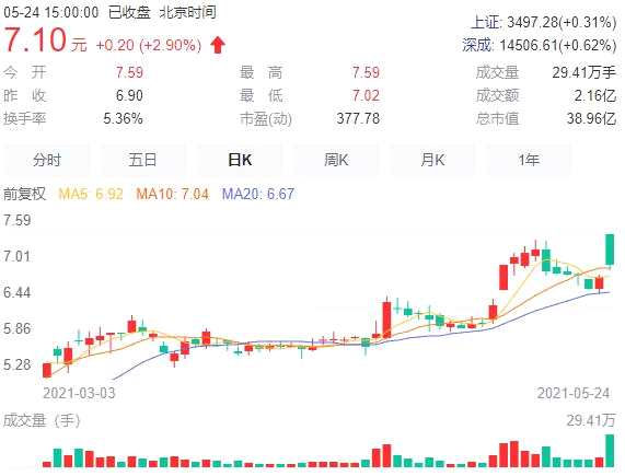 5月24日,南風(fēng)化工開盤一字板漲停。隨后,受周期板塊集體重挫影響,漲停板打開,截至尾盤,收于7.1元/股,漲幅2.9%。值得注意的是,這是南風(fēng)化工股價(jià)自2015年股災(zāi)暴跌以來的新高,而相比1年前,更是幾乎翻了3倍。