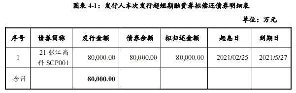 消息顯示,本期債券實(shí)際發(fā)行金額8億元,票面利率2.46%,發(fā)行期限178天。債券簡(jiǎn)稱21張江高科SCP002,債券代碼012101937。