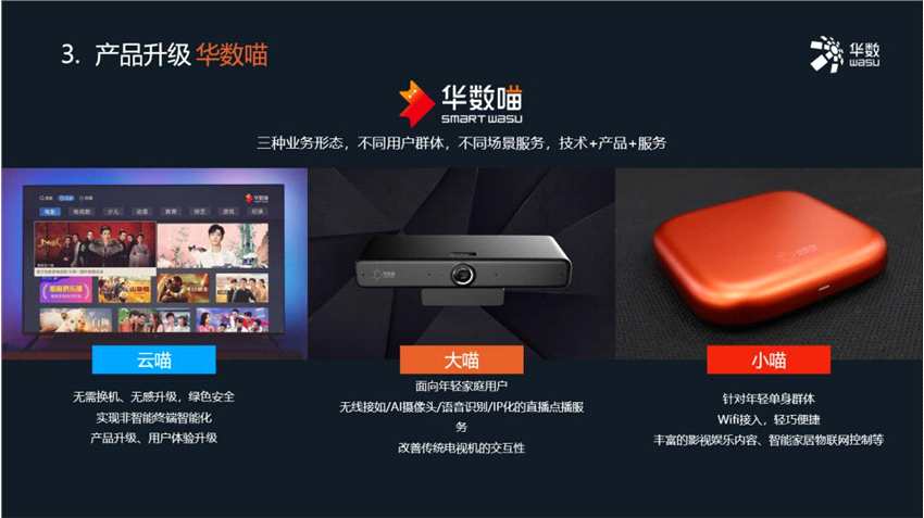 “華數(shù)喵”分為三種業(yè)務(wù)形態(tài),面對(duì)不同用戶群體提供不同場(chǎng)景服務(wù)。