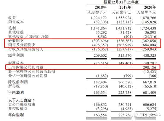 2018年至2020年,集團(tuán)總收益分別為12.2億、15.5億和18.7億元,復(fù)合年增長(zhǎng)率23.8%,毛利潤(rùn)分別為11.4億、14.3億和17.2億元,凈利潤(rùn)分別為1.63億元、2.26億和6億元。綜合毛利率分別為94.36%、93.23%和92.57%,凈利率分別為13.36%、14.53%和32.14%,2020年剔除出售資產(chǎn)收益后凈利潤(rùn)3.42億元,凈利率18.3%,總體仍然有明顯上升。
