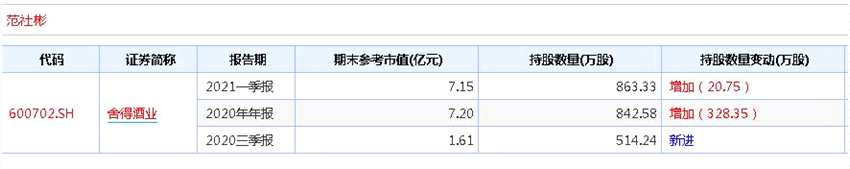 wid數(shù)據(jù)顯示,截至一季度末,范社彬持有舍得酒業(yè)863.33萬股,為第三大流通股東。