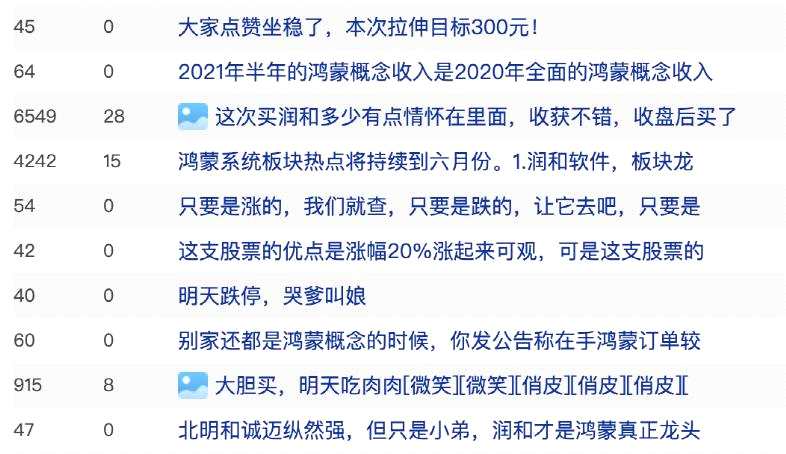 雖然潤和軟件發(fā)布公告提示風險,但似乎卻未能擋住投資者的熱情,更有股民將其目標價直接看高至300元。有股民認為,“潤和軟件才是鴻蒙板塊真正的龍頭,重倉持有。周末去買個華為的筆記本,用實際行動支持一下?!?/p>