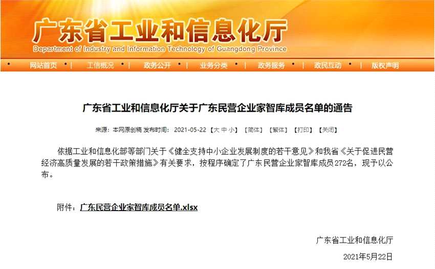 5月22日,廣東省工業(yè)和信息化廳正式公布了《廣東民營企業(yè)家智庫成員》名單。廣東拓斯達(dá)(300607)科技股份有限公司董事長兼總裁吳豐禮成功入選。
