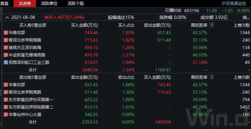 因連續(xù)三個交易日內漲幅偏離值累計達20%和股價振幅值達15%,日播時尚分別于6月3日和8日登上龍虎榜。6月8日龍虎榜數據顯示,買入金額前5名買入總計2840.04萬元,占當天總成交金額7.24%;賣出金額前5名賣出總計2353.53萬元,占當天總成交金額6%。
