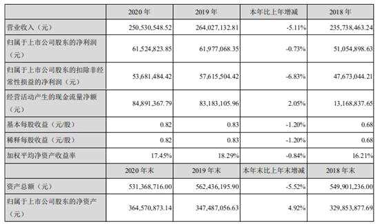 德固特4月18日發(fā)布了2020年年度業(yè)績(jī)報(bào)告,實(shí)現(xiàn)營(yíng)業(yè)收入2.51億元,同比下降5.11%;歸母凈利潤(rùn)6152.48萬(wàn)元,同比下降0.73%;扣非歸母凈利潤(rùn)為5368.14萬(wàn)元,同比下降6.83%;每股收益為0.82元,同比下降1.20%。