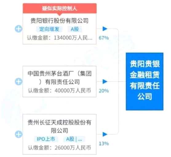 2016年,*ST天成與茅臺集團、【貴陽銀行(601997)、股吧】(601997)共同成立貴銀金融租賃有限公司。天眼查資料顯示,茅臺集團占貴銀金融租賃有限公司股權(quán)的20%,天成控股占貴銀金融租賃有限公司股權(quán)的13%。