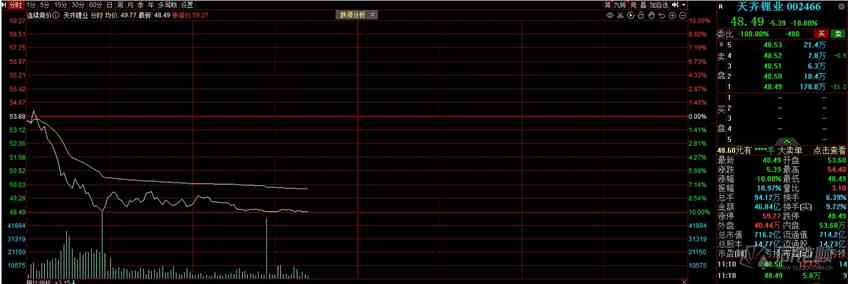 6月15日,天齊鋰業(yè)(002466)早盤跳水,截至發(fā)稿,天齊鋰業(yè)跌停,報價48.49元。