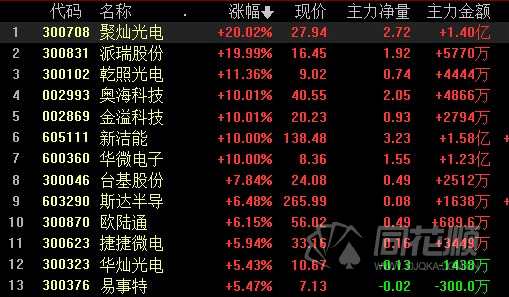 6月16日,第三代半導(dǎo)體及元件概念大漲,截至發(fā)稿,板塊中聚燦光電(300708)、派瑞股份(300831)、奧??萍迹?02993)、金溢科技(002869)、新潔能(605111)、華微電子(600360)等6只個(gè)股漲停,歐陸通(300870)、捷捷微電(300623)、華峰測(cè)控、斯達(dá)半導(dǎo)(603290)、【易事特(300376)、股吧】(300376)、臺(tái)基股份(300046)等個(gè)股紛紛跟漲。