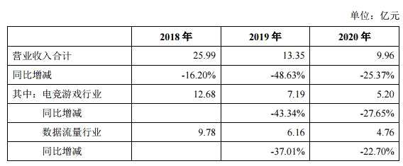 2018年至2020 年,天神娛樂實現(xiàn)營業(yè)收入分別為25.99億元、13.35億元、9.96 億元。凈利潤分別為-71.51億元、1.98億元、1.53億元,扣非后凈利潤分別為-61.65億元、-11.96億元、-24.43億元。
