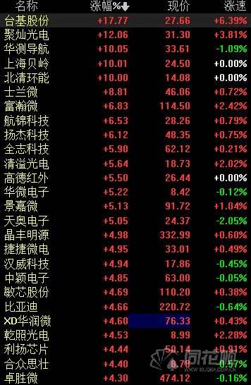 6月17日,A股市場(chǎng)中芯片概念股異動(dòng)拉升,截至發(fā)稿,【臺(tái)基股份(300046)、股吧】、聚燦光電、華測(cè)導(dǎo)航漲超10%,上海貝嶺、北清環(huán)能漲停,士蘭微股價(jià)再創(chuàng)新高,富瀚微、全志科技等紛紛跟漲。