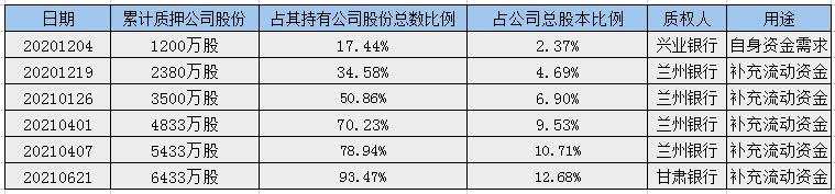 從歷史公告信息來看,亞特集團(tuán)從2020年12月以來,半年時(shí)間內(nèi)先后進(jìn)行了6筆質(zhì)押,分別將金徽酒股權(quán)質(zhì)押給興業(yè)銀行、蘭州銀行、甘肅銀行。從金徽酒的對(duì)外公告的內(nèi)容上來看,6次質(zhì)押用途中有5次為“補(bǔ)充流動(dòng)資金”,1次為“自身資金需求”。