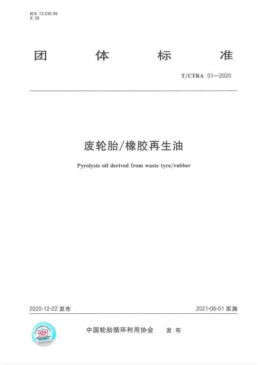 憑借在有機(jī)廢棄物熱裂解領(lǐng)域豐富的技術(shù)積淀與實(shí)踐經(jīng)驗(yàn),恒譽(yù)環(huán)保作為牽頭起草單位,與中國(guó)輪胎循環(huán)利用協(xié)會(huì)聯(lián)合行業(yè)11家單位,共同編制了《廢輪胎/橡膠再生油》(標(biāo)準(zhǔn)號(hào)T/CTRA 01-2020)。該標(biāo)準(zhǔn)由中國(guó)輪胎循環(huán)利用協(xié)會(huì)提出并歸口, 規(guī)定了廢輪胎、廢橡膠再生油的術(shù)語(yǔ)和定義、技術(shù)要求、試驗(yàn)方法、檢驗(yàn)規(guī)則、標(biāo)志、包裝和儲(chǔ)運(yùn),適用于以廢輪胎、橡膠為原料,通過(guò)熱裂解的方式生產(chǎn)的再生油, 標(biāo)準(zhǔn)具有科學(xué)性、先進(jìn)性、系統(tǒng)性和可行性,同時(shí)具有可操作性和重要的規(guī)范性。