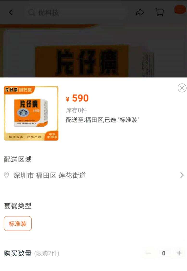 基金君也打開片仔癀的天貓旗艦店“片仔癀大藥房旗艦店”,果然顯示片仔癀的庫(kù)存為0。