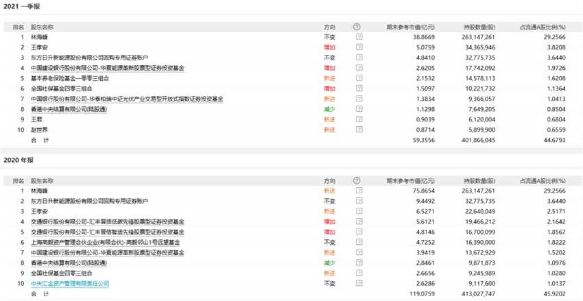 截至2021年3月31日,東方日升共有股民7.94萬戶,交通銀行旗下兩只基金和高毅資管旗下高毅鄰山1號遠望基金退出前十大流通股,新增養(yǎng)老保險基金等流通股東。
